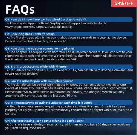 Compatible with any car model with a wired CarPlay port