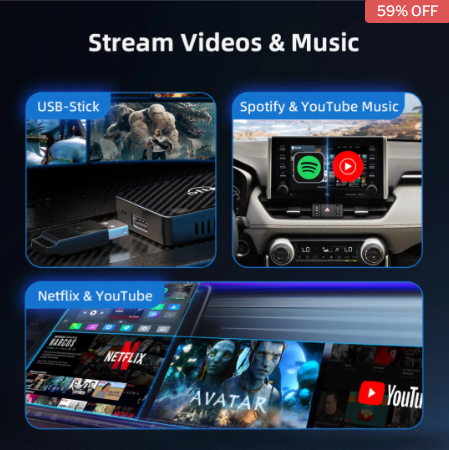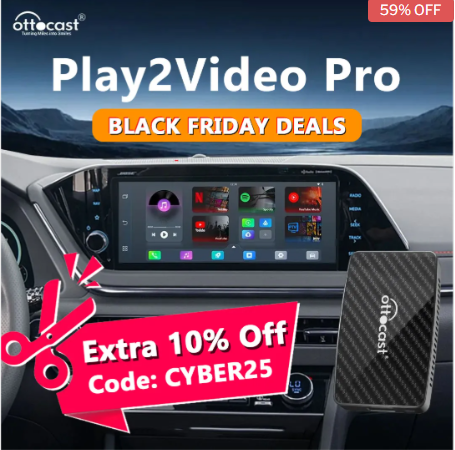 Play2Video Pro is our most cost-effective product customized by Ottocast user feedback. It integrates wireless CarPlay/Android Auto + YouTube + Netflix + IPTV Apps. Don’t miss the historical low price.