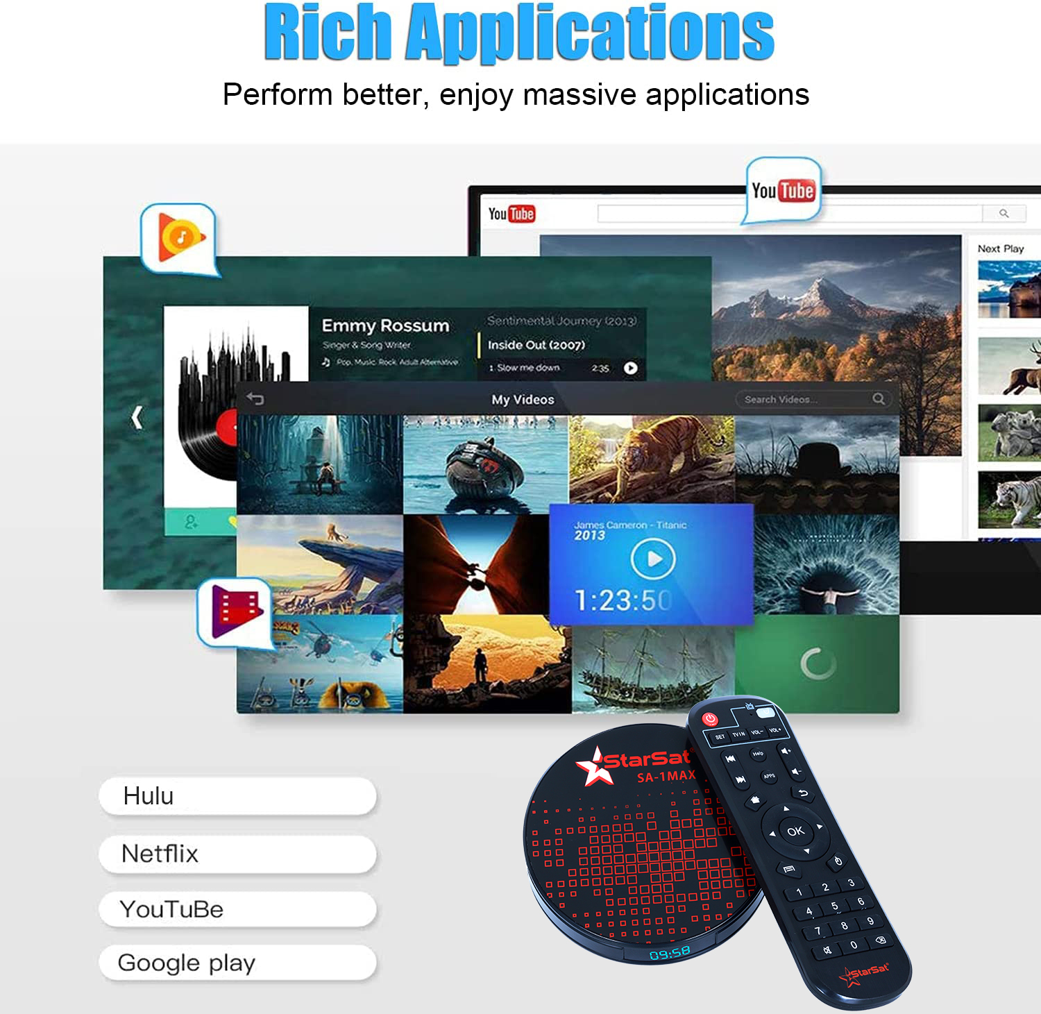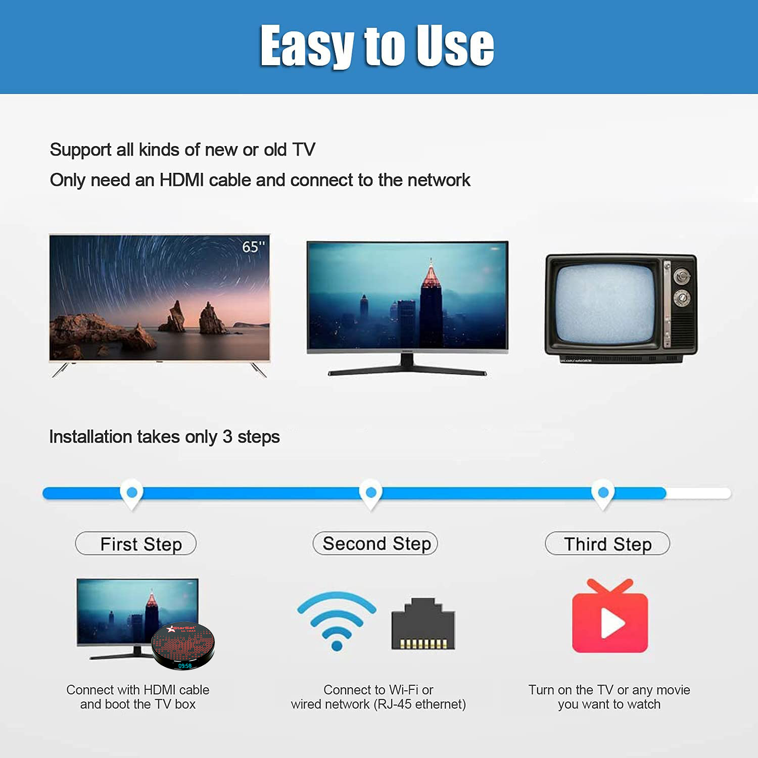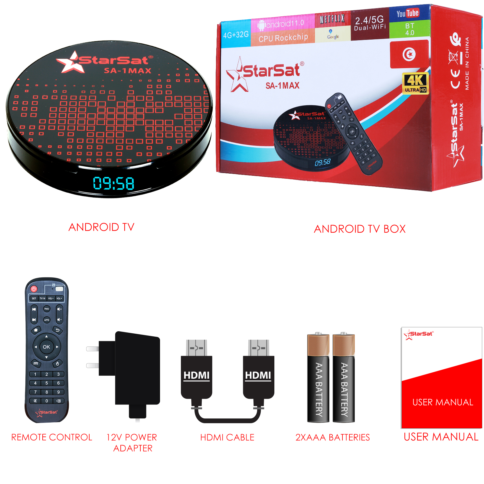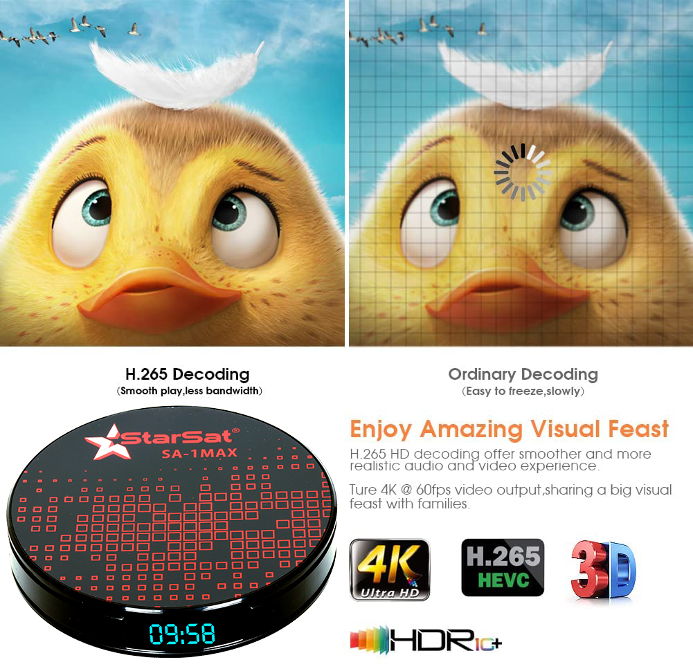 Introducing the StarSat SV-1Max Android TV Box – Elevate your home entertainment experience with the pinnacle of technological sophistication. Immerse yourself in the latest Android 11.0 OS, empowering you with the flexibility to effortlessly install a plethora of applications. This high-configuration android TV box not only redefines your viewing experience but transforms into a comprehensive family entertainment center.